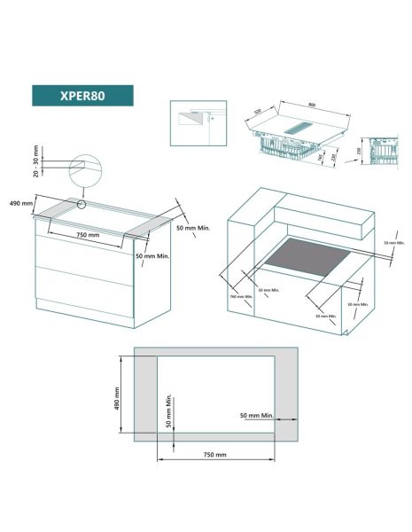 INDUCCIÓN JOHNSON XPER80 FLEXIBLE CON CAMPANA EXTRACCION HUMO 80 CM 4F